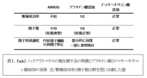 コサヘキサエン酸の添加で雄の生殖機能は正常に戻るが、アラキドン酸添加の効果はドコサヘキ
