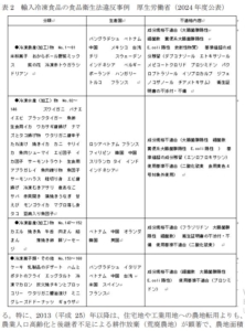 しかし、輸入冷凍食品で食品衛生法に違反した事例 168 品目(表 2 厚生労働省 2024 年度公表)を見ると、幅広く多岐にわたっている。冷凍加工で菌が完全に死滅したり、添加物や農薬が消えることは基本的にない