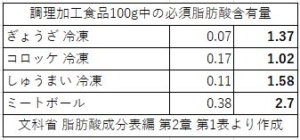 一般的な冷凍食品や加工肉、ドレッシングに含まれる必須脂肪酸