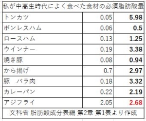 では、当時(中学・高校生時代)を思い出して、いったいどれくらいのオメガ6を摂っていたのか?再確認しておきましょう。