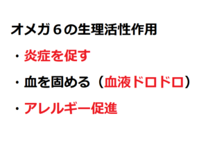 ここで、オメガ6の生理活性作用を確認しておきましょう。